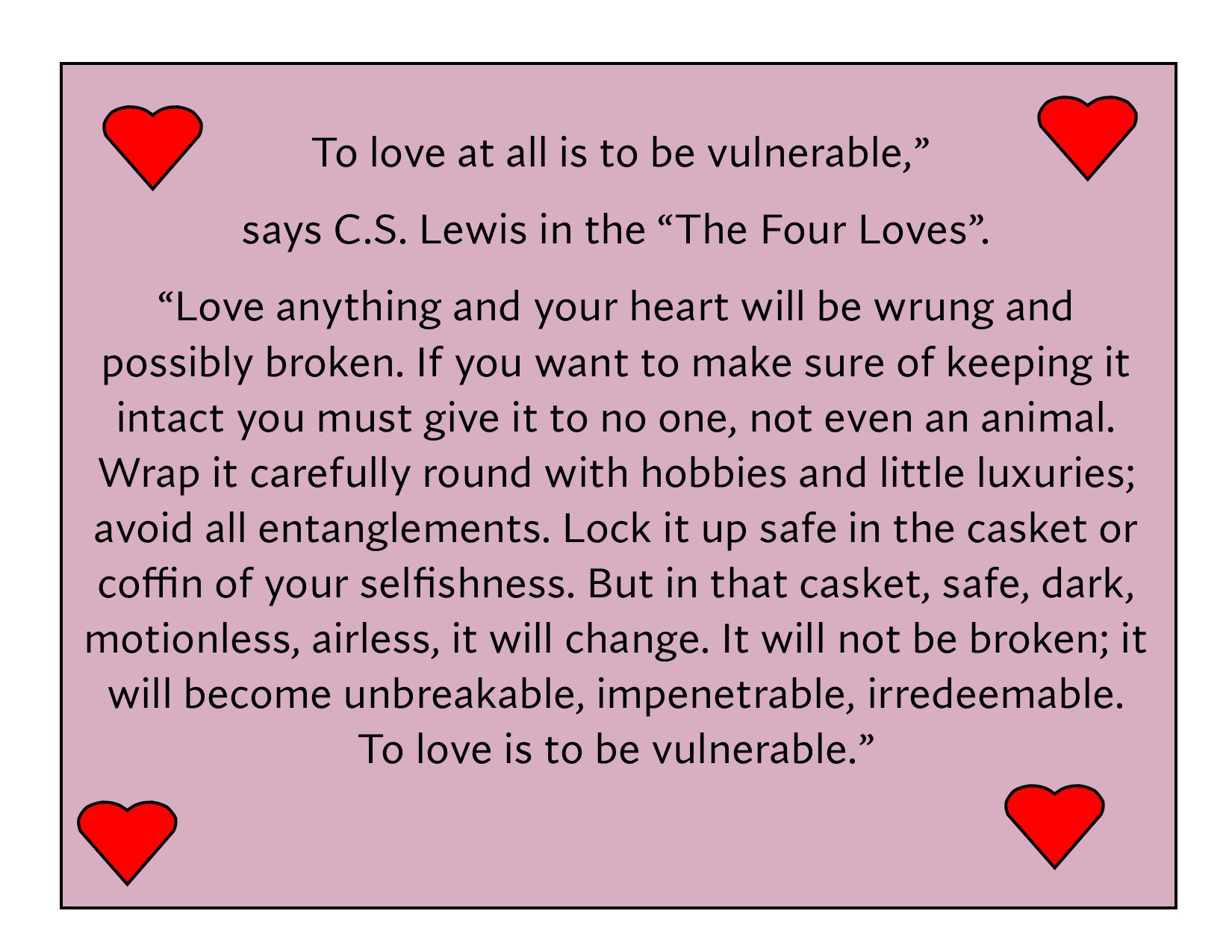 I am reminded of a quote from C.S. Lewis:
